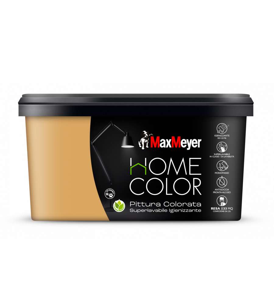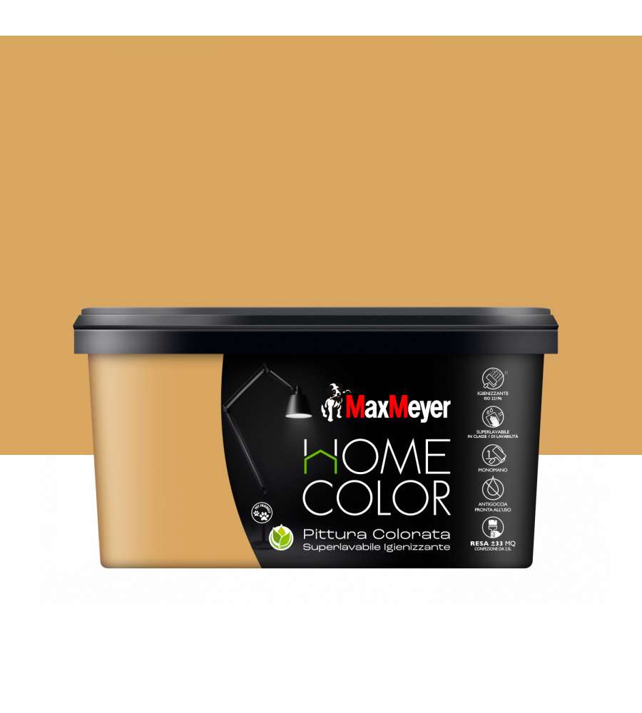 Descrizione: Scopri la pittura murale MaxMeyer Home Color Oro, superlavabile e igienizzante. Alta resistenza, finitura opaca e copertura eccezionale. Ideale per interni, facile da applicare. Confezione da 2,5 L.