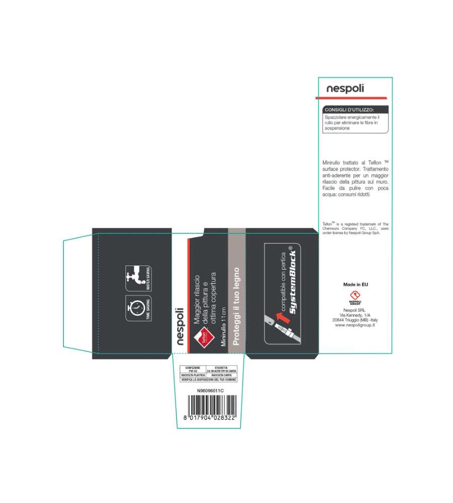 Descrizione: Minirullo NESPOLI da 11 cm in Teflon per pittura su legno. Perfetto per smalti, impreganti e oli, offre una stesura uniforme e un manico ergonomico Soft Touch per un comfort ottimale durante l'uso.