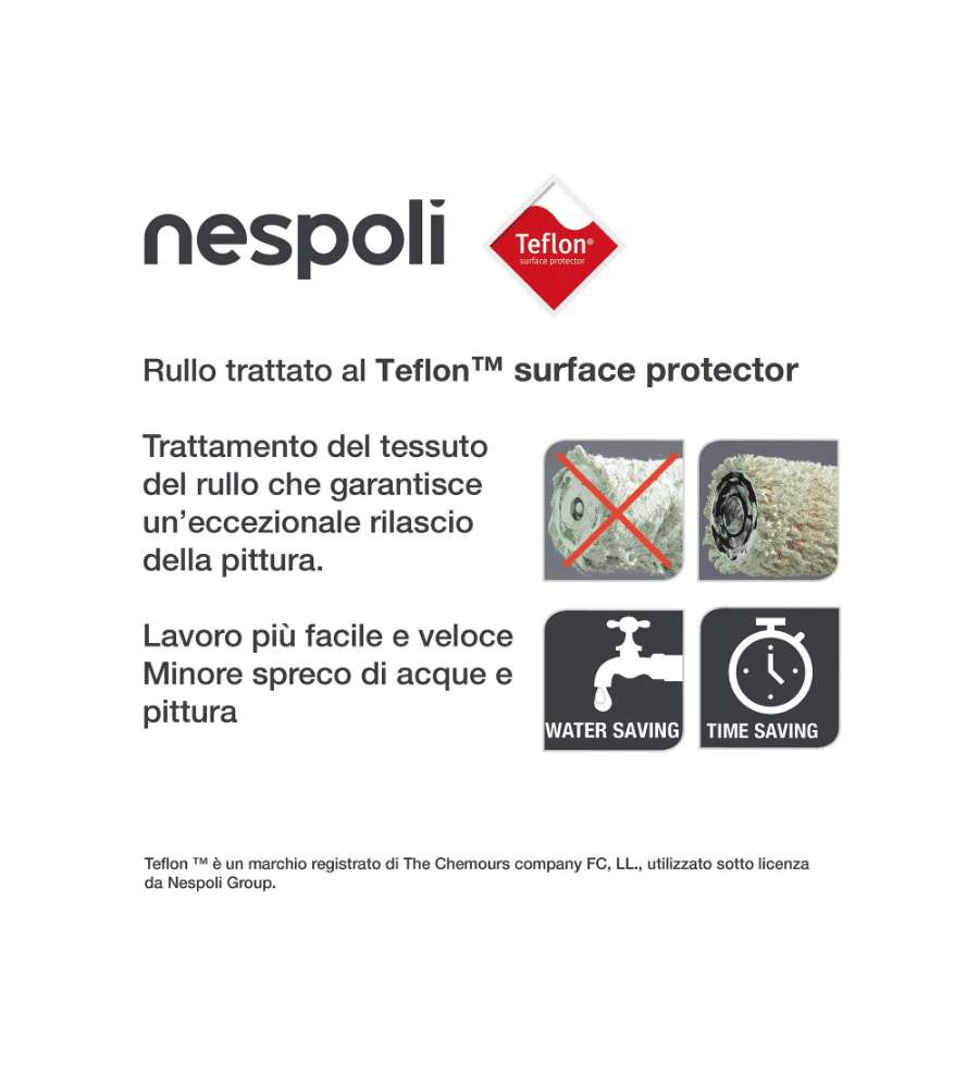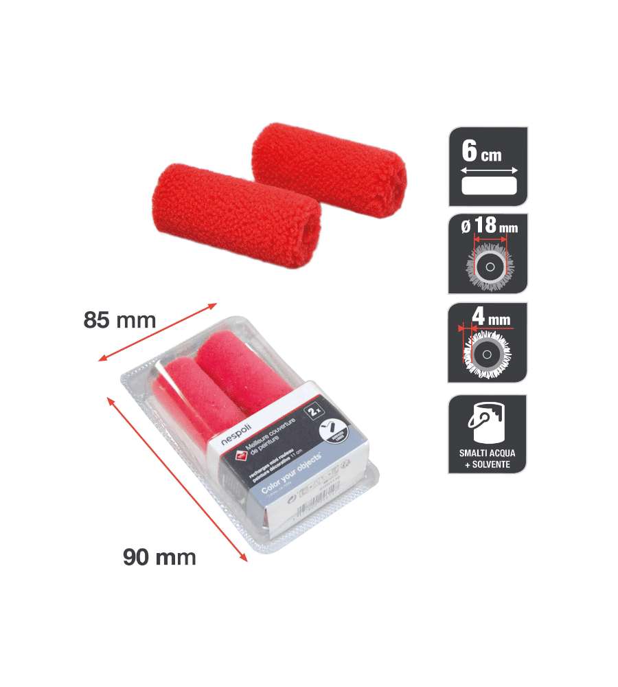 Descrizione: Set di 2 ricambi per mini rullo Nespoli, larghezza 6 cm, ideale per smalti acqua e solvente. Realizzati in teflon per un'applicazione uniforme e senza sprechi. Perfetti per dettagli e finiture precise.