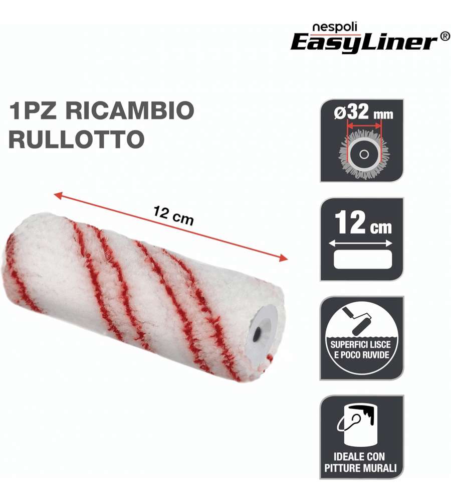Descrizione: Ricambio rullo Nespoli EasyLiner 12 cm per pittura senza mascheratura. Ideale per angoli e rifiniture precise, garantisce applicazione uniforme su superfici lisce. Facile da usare per lavori fai da te.