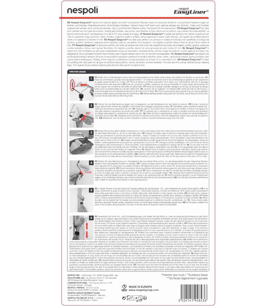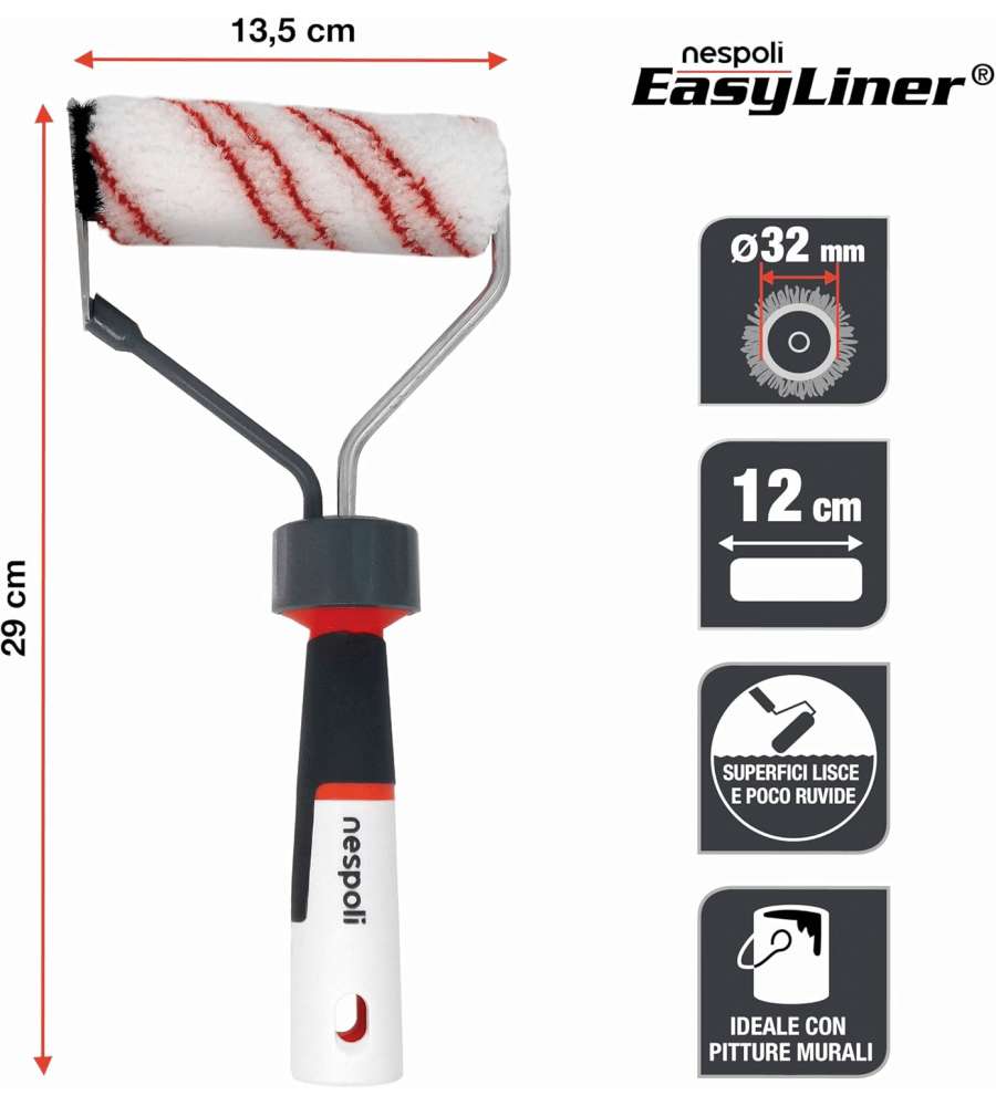 Descrizione: Rullo per pittura Nespoli 12cm con tecnologia Easyliner. Rifiniture precise senza nastro adesivo, ideale per angoli e stipiti. Facile da usare, perfetto su superfici lisce. Qualità garantita!