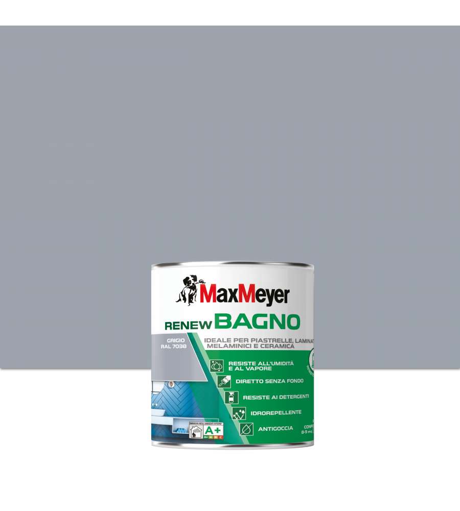 Descrizione: Smalto all'acqua satinato MaxMeyer Renew per interni, colore grigio Ral 7039, 0,75L. Resistente a umidità e detergenti, pronto all'uso, copertura 10-12 mq/L. Idrorepellente e sicuro per la salute.