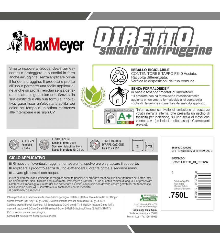 Descrizione: Smalto antiruggine Ferromicaceo Bronzo 0,75L, pronto all'uso per interni ed esterni. Asciugatura rapida, inodore, anti-intemperie e idrorepellente. Protezione duratura fino a 8 anni su tutti i metalli.