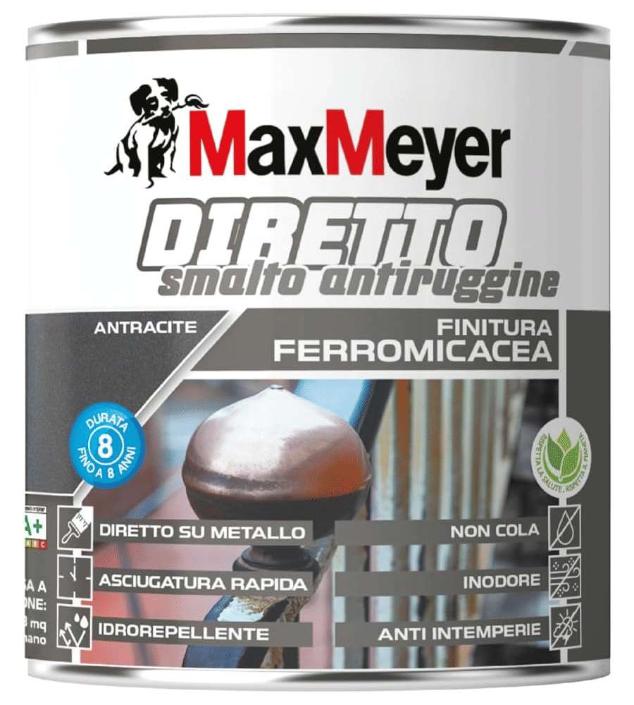 Descrizione: Smalto antiruggine diretto Maxmeyer Grigio Antracite 0,75 L, ideale per interni ed esterni. Asciugatura rapida, inodore e resistente agli agenti atmosferici. Protezione duratura fino a 8 anni.