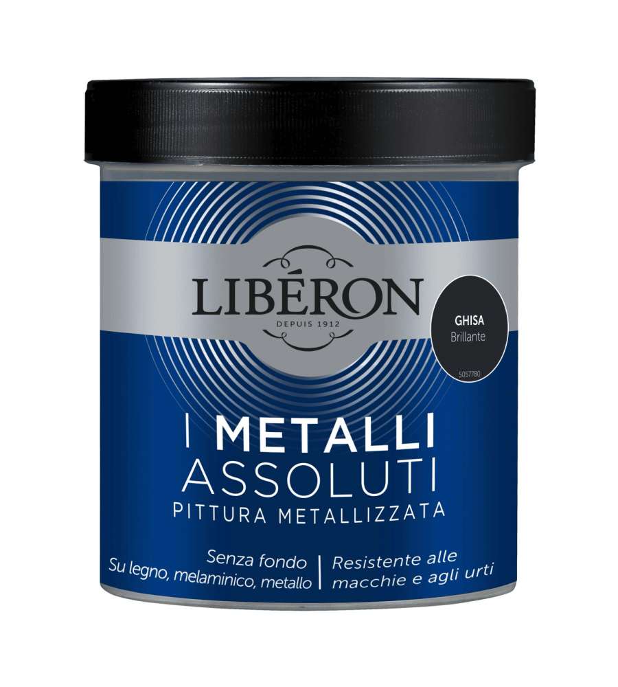 Pittura metallizzata effetto ghisa brillante, ideale per decorare legno e mobili senza fondo. Facile applicazione, resistente a macchie e urti, ultra lavabile. Asciugatura in 12 ore, copertura di 5 mq per confezione. Formato 0,5 L.Applicazione: