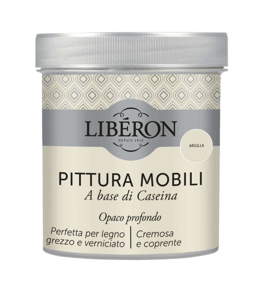 La Libéron Pittura Mobili a base di Caseina Argilla è la soluzione perfetta per chi desidera rivitalizzare i propri arredi in modo semplice e veloce. Grazie alla sua formula cremosa, questa pittura si applica facilmente e garantisce un'ottima copertura, rendendo i mobili come nuovi. La rapida asciugatura in sole 4 ore la rende ideale anche per chi ha poco tempo a disposizione. Sia che tu stia lavorando su legno grezzo che su superfici verniciate, questa pittura si adatta perfettamente e offre risultati eccezionali.