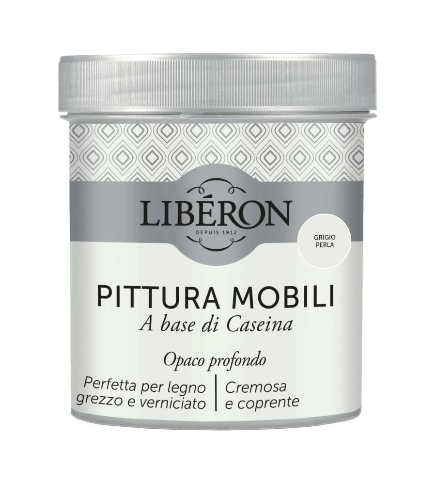 Descrizione: Pittura per mobili Grigio Perla 0,5L di Libéron: alta coprenza e consistenza cremosa per un'applicazione facile e uniforme. Ideale per legno grezzo e verniciato, asciuga in 4 ore.